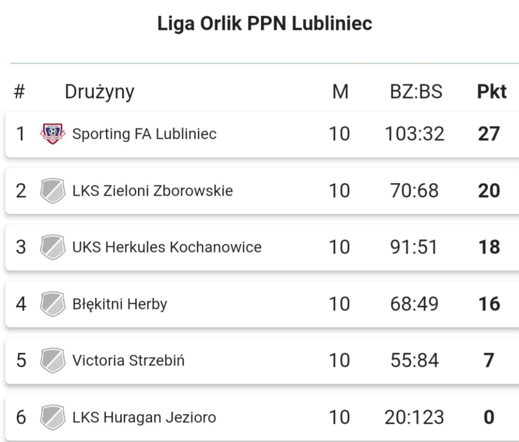 E1 Orlik PPN Lubliniec – Sporting FA Lubliniec 9:1 Huragan Jezioro