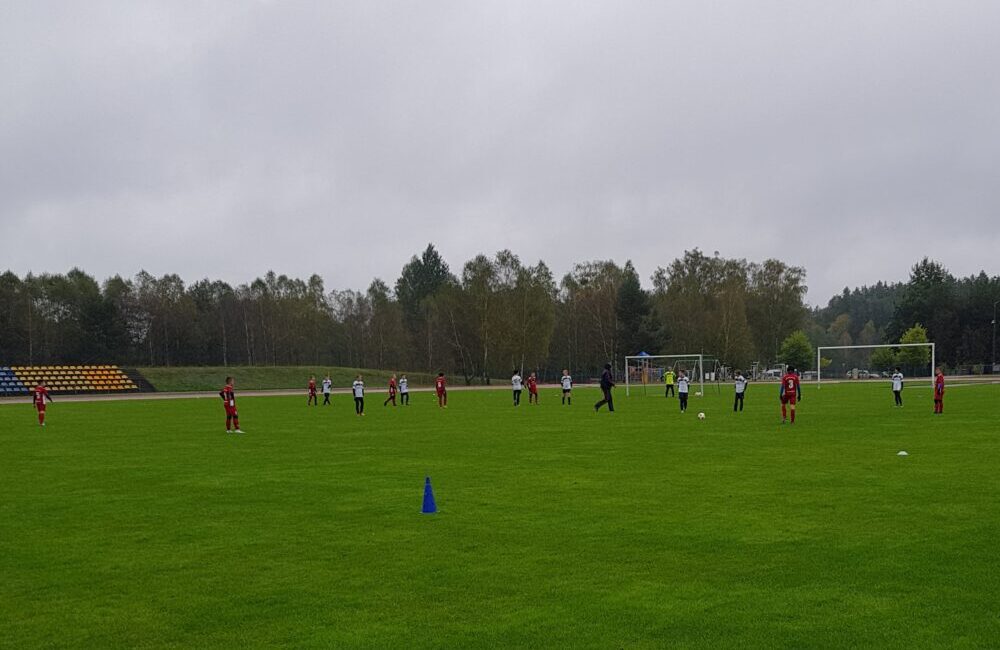 Mecz rozgrywany był przy prawdziwie “angielskiej pogodzie”, która mocno utrudniała grę w piłkę. Nie przeszkodziło to jednak naszym podopiecznym w skontrolowaniu sytuacji na boisku i zanotowaniu kolejnej bezdyskusyjnej wygranej.